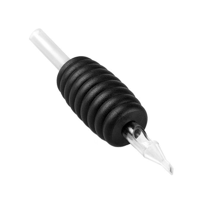 Caja de 20 combinaciones desechables de tubo de silicona romboidal para tatuaje y punta. Con manija de 25mm e interior transparente para una mayor visibilidad mientras se tatúa.