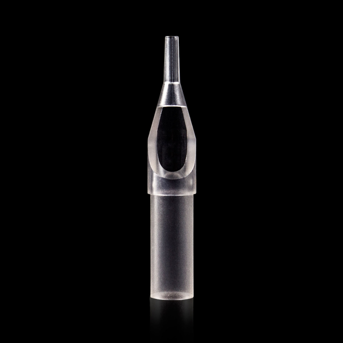 Caja de 50 puntas transparentes redondas de Killer Ink PREMIUM. Las puntas vienen esterilizadas y empaquetadas individualmente. Las puntas transparentes le permiten ver bien sus agujas y la tinta.