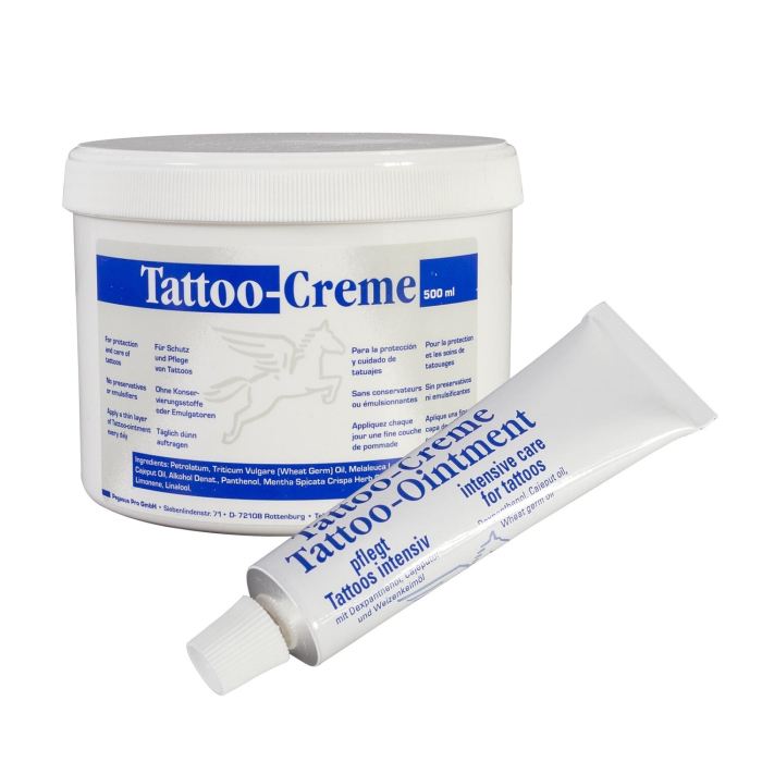 Pegasus Pro Tattoo-Creme es uno de los productos de curación de tatuaje más populares en Europa. Esta crema para los tatuajes está especialmente formulada para ayudar y reforzar el regeneramiento de las capas de la piel.