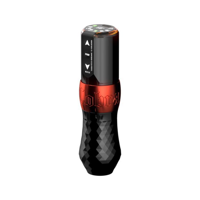 El cuerpo de esta máquina inalámbrica tipo pen es de un color negro elegante, con un grip facetado en forma de diamante que se ensancha hasta un diámetro máximo de 37 mm. La profundidad de aguja de 4 mm se ajusta fácilmente girando el Powerpack, y tanto la profundidad como el recorrido de la aguja pueden ajustarse manualmente con el kit de herramientas incluido.