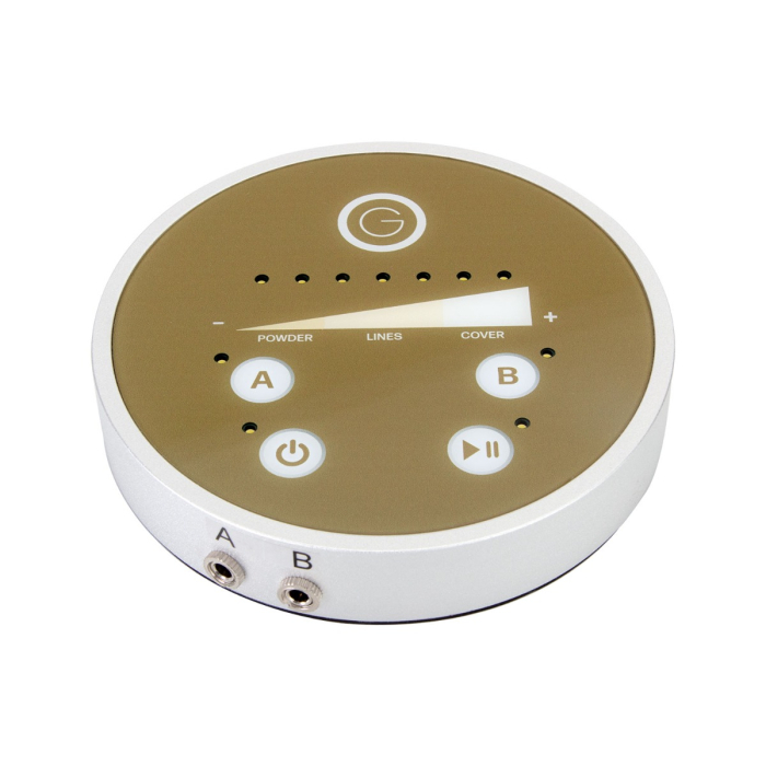La máquina Multitalent tiene 2 puertos para conectar piezas de mano, como Dermograph SLS o Dermograph Classic de Goldeneye (se venden por separado). Puede ajustar fácilmente la velocidad a través de la barra táctil de la máquina, con 7 configuraciones diferentes para elegir.