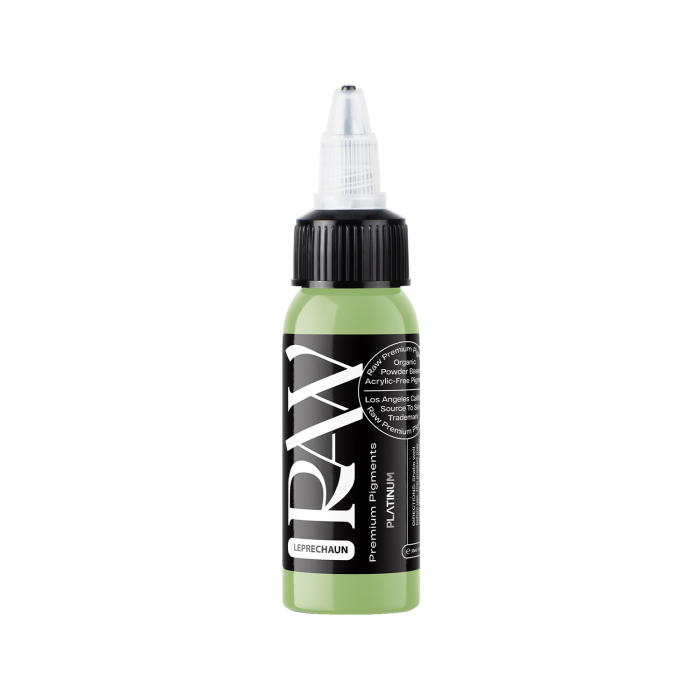 Leprechaun es una tinta para tatuar de color verde claro y brillante de la gama Platinum de Raw Premium Pigments, que cumple con la normativa EU REACH.