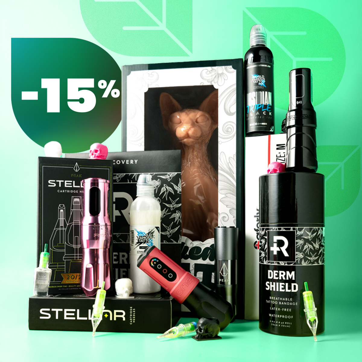 ¡Nuestras Rebajas de Primavera ya están aquí! Disfruta de un 15% de descuento en toda la tienda, desde tus máquinas de tatuar, cartuchos y tintas favoritas, hasta los productos de higiene en los que confías cada día. ¡Haz acopio de las mejores marcas ahora y mantente siempre equipado por menos!