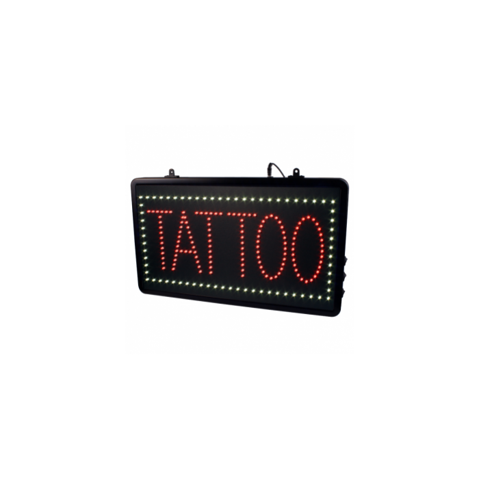 Este cartel LED con la leyenda "TATTOO" puede ir muy bien colgado en el escaparate de su estudio de tatuaje, ¡y dándole un aire muy auténtico! Va con una cadena y se conecta directamente a la red con un cable de unos 1900mm de largo. El luminoso ofrece cuatro configuraciones:
