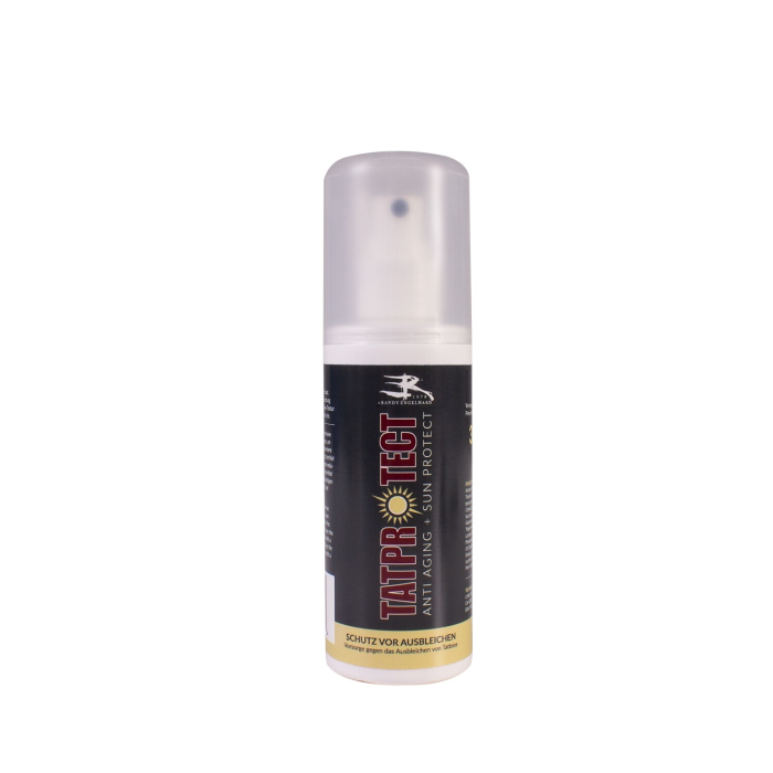TATProtect Anti-envejecimiento y protección solar con factor de protección SPF 30 protege sus tatuajes del descoloramiento y del envejecimiento prematuro de la piel. Resistente al agua, protegerá contra los rayos UVA y UVB perjudiciales a la vez que hidrata y mantiene la piel suave. La vitamina E de su fórmula aumenta la resistencia de la piel, favorece el metabolismo y reduce el envejecimiento prematuro de la piel por los radicales libres. La fórmula refrescante contra el envejecimiento de protección solar de TATProtect es ligera y refrescante y se absorbe inmediatamente por la piel.